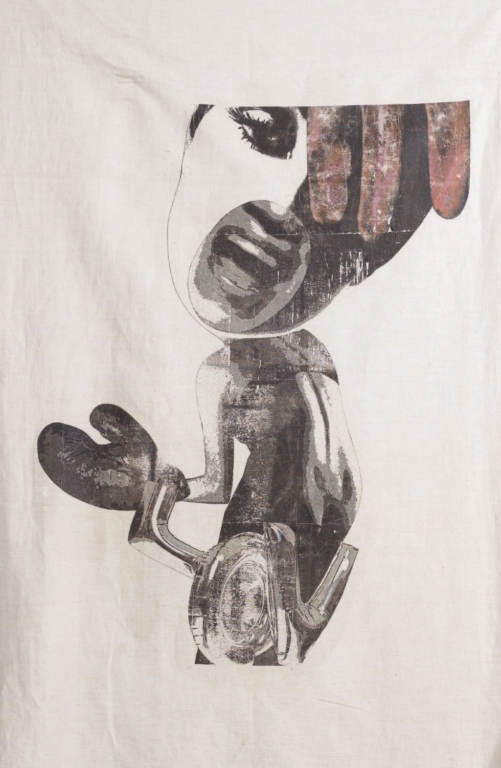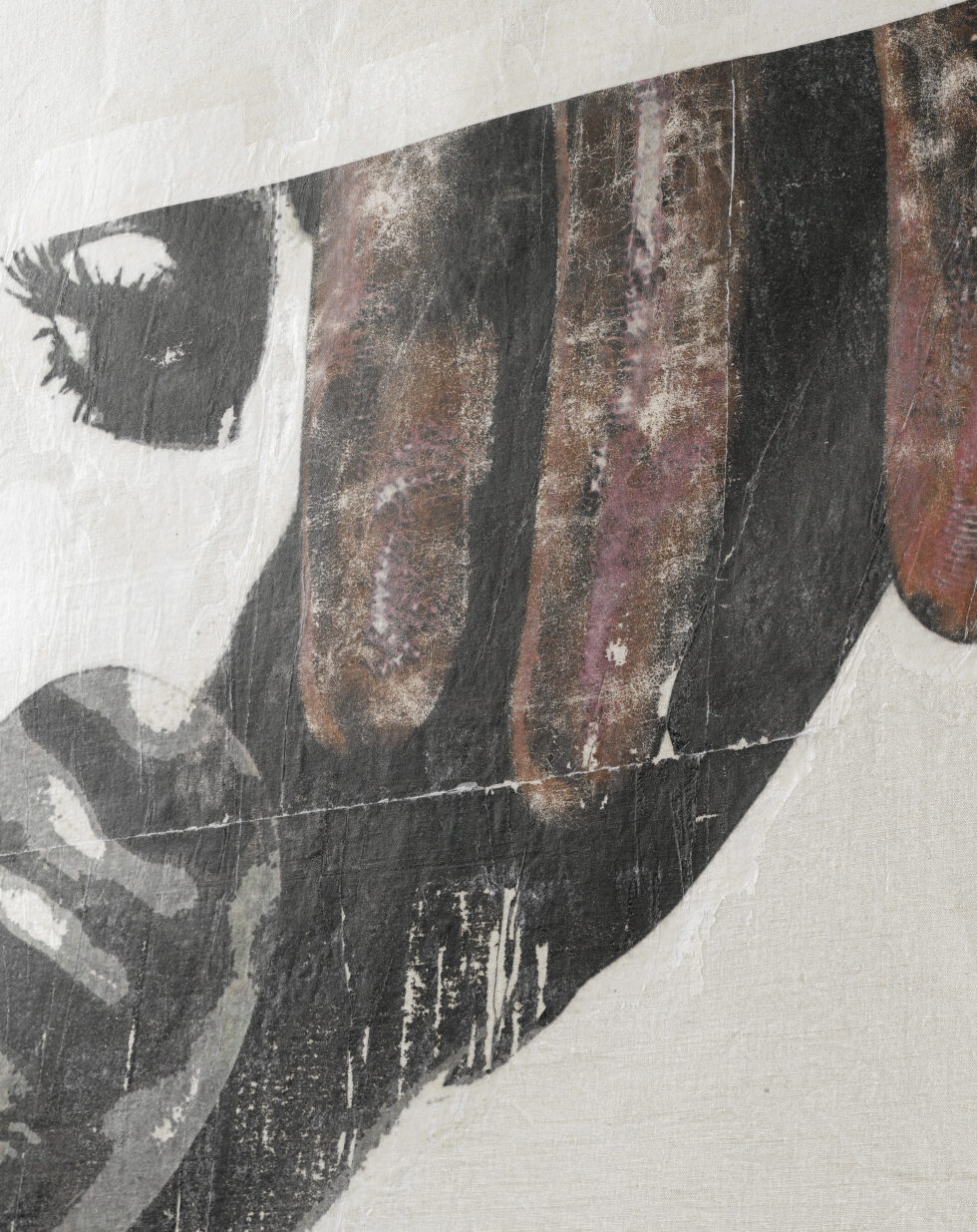 Toile de lin / Transfert couleur / Broderie.